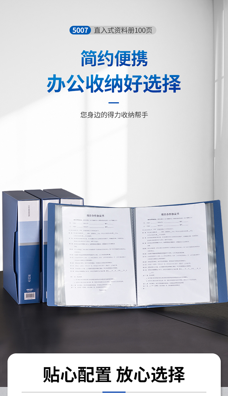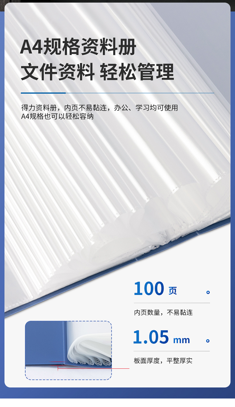 得力 5007 資料冊 A4 藍色 100頁