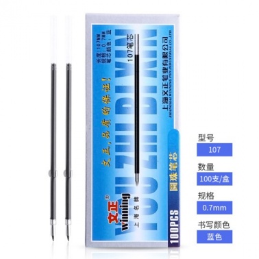 文正 WZ-107 圓珠筆芯 0.7mm 藍(lán)色 100支/盒