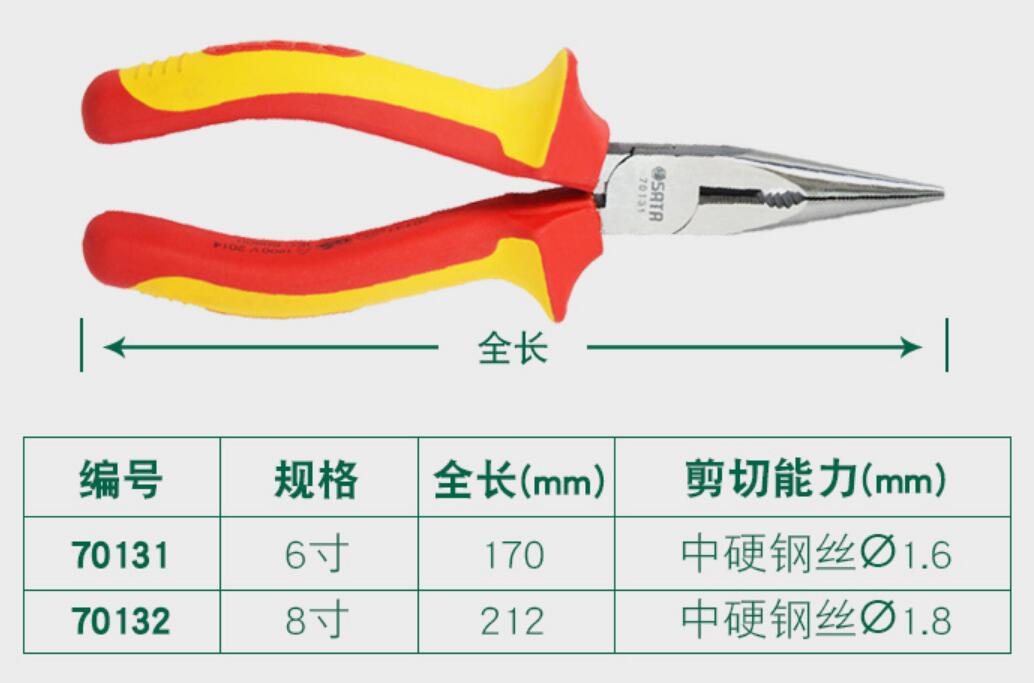 世達 70131 VDE絕緣耐壓尖嘴鉗 6寸