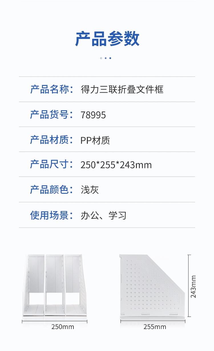得力 78995 三聯(lián)折疊文件框 淺灰