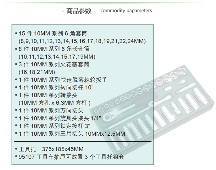 世達(dá) 09902 工具托組套-33件10MM系列套筒組套