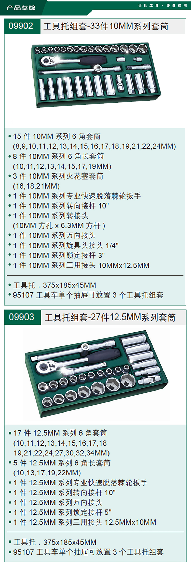 世達(dá) 09903 工具托組套-27件12.5MM系列套筒組套