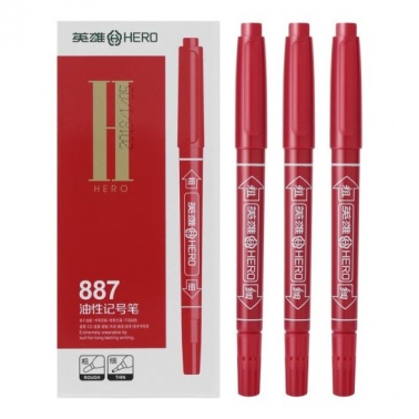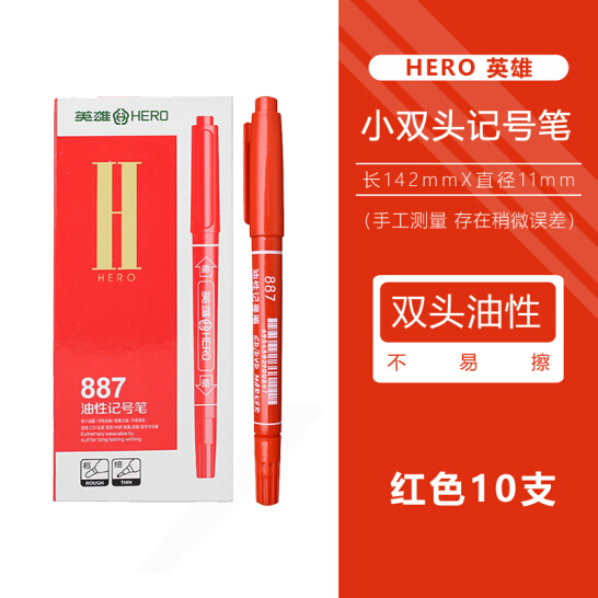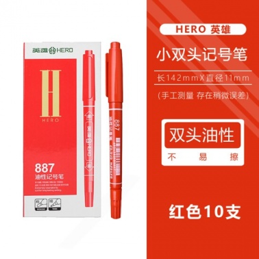 英雄 887 小雙頭油性記號筆 紅色 10支/盒