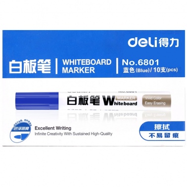 得力 6801 白板筆 2.0mm 藍(lán)色 10支/盒