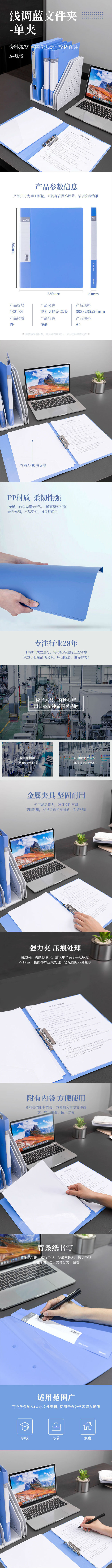 得力 5301ES 單強力夾+插頁袋 A4 藍色 背寬18mm