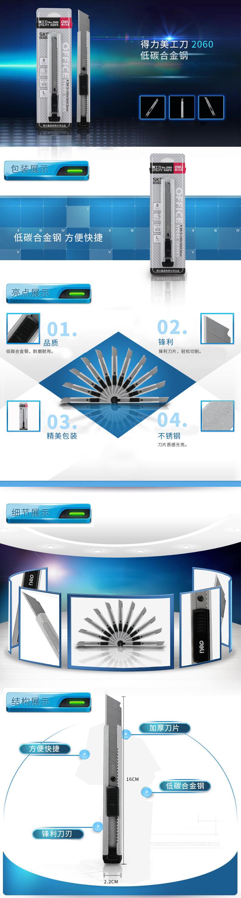 得力 2060 美工刀(大號) 18mm 銀灰