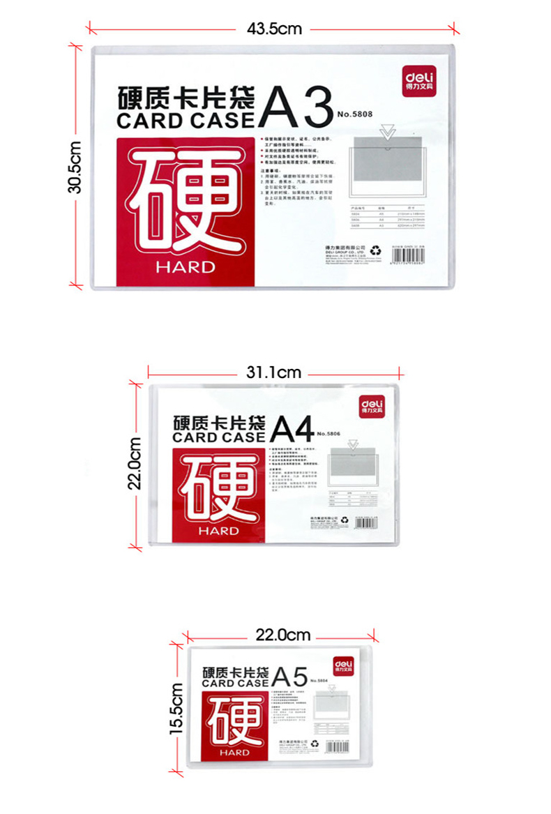 得力 5806 PVC硬質(zhì)卡片袋/硬膠套 A4 透明