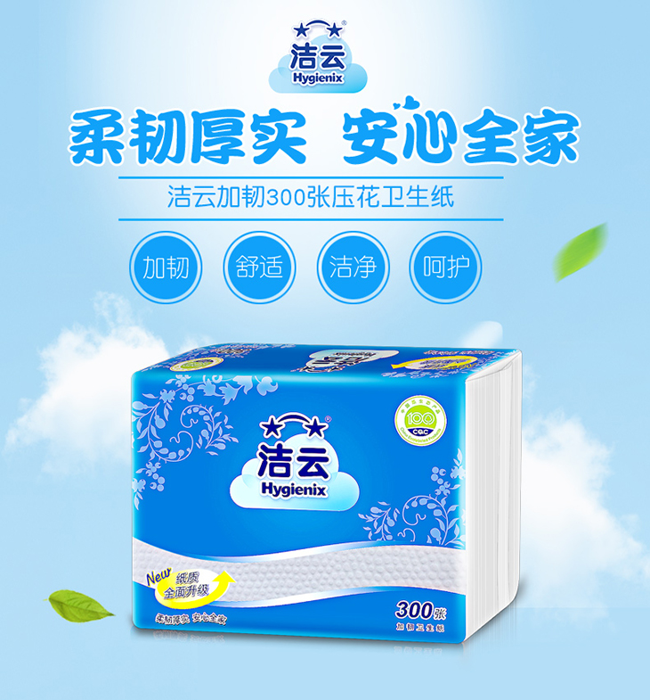 潔云 10240101 加韌壓花平板衛(wèi)生紙 300張/包 42包/箱 按箱銷售