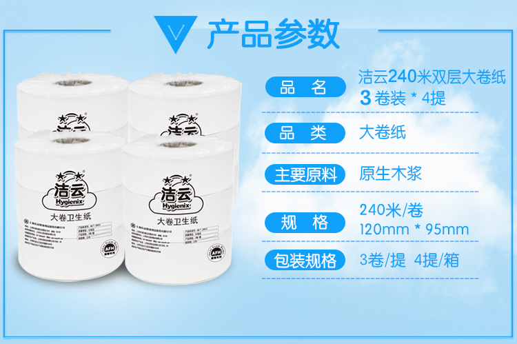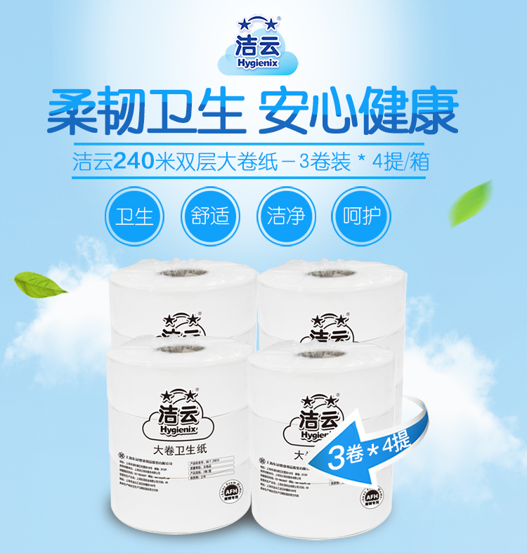 潔云 116126/11612601 雙層大卷衛(wèi)生紙240米 3卷/提 4提/箱 按箱銷售
