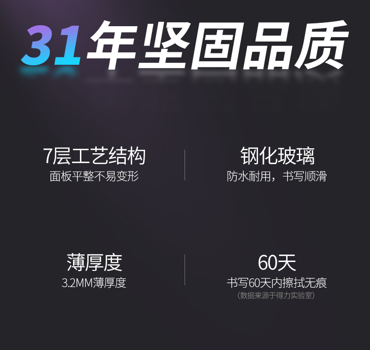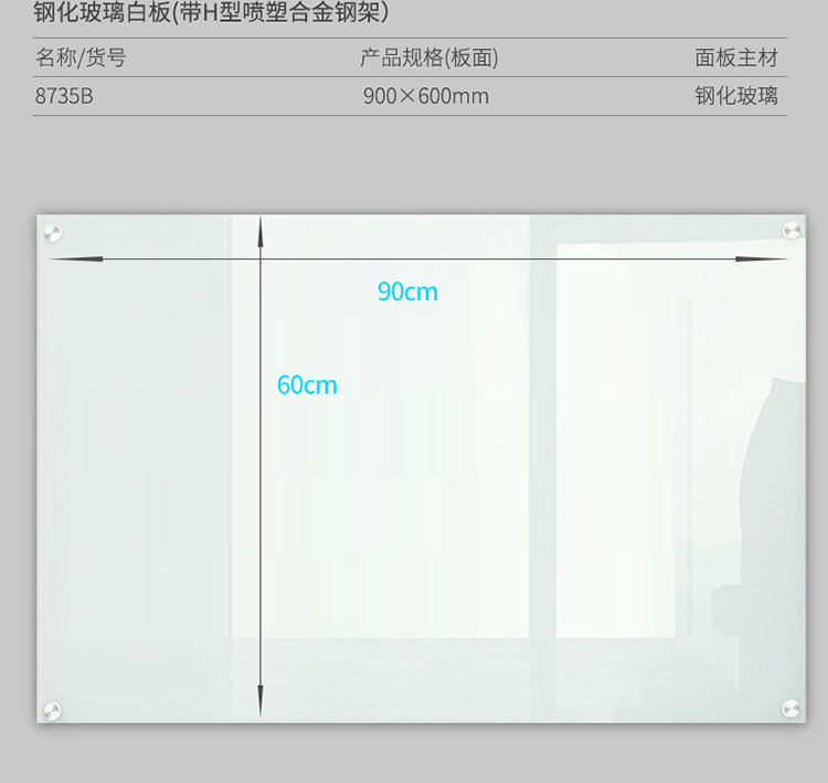 得力 8735B 磁性鋼化玻璃白板 600*900mm 白色