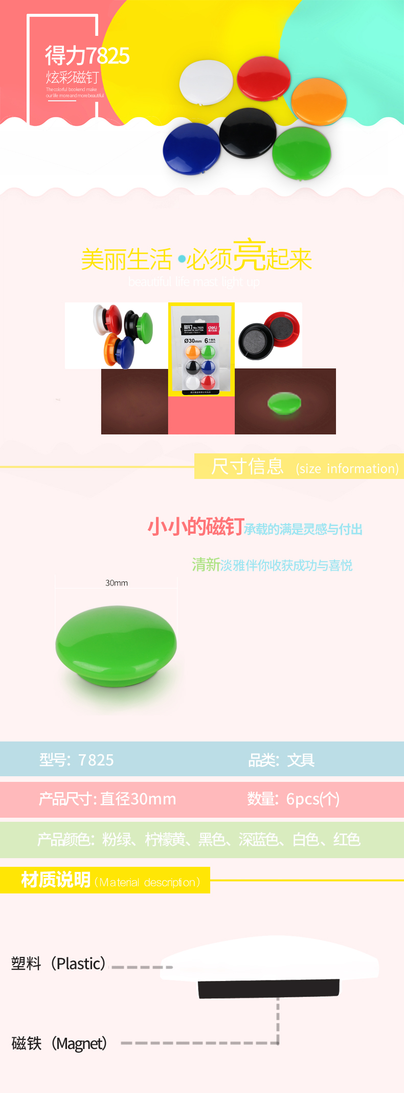 得力 7825 磁釘φ30mm 混色 6個(gè)/卡