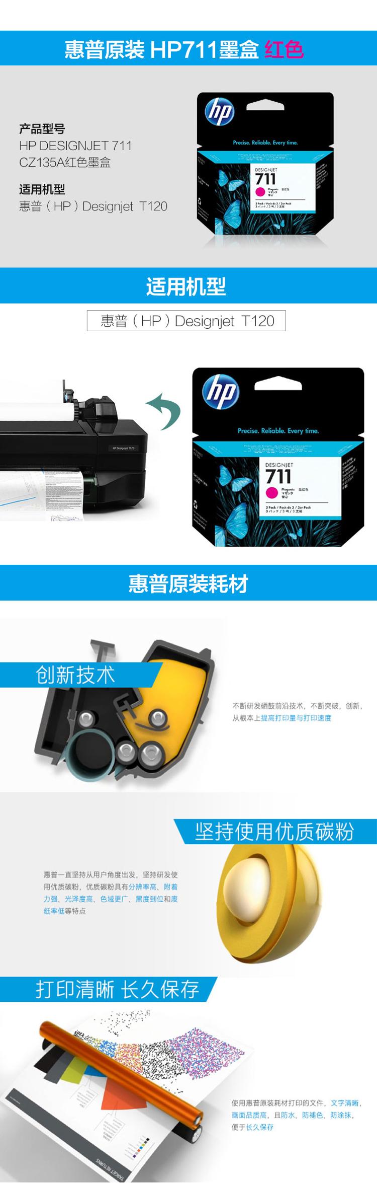 惠普 CZ135A 711墨盒 29ml 紅色(適用T520/T120)