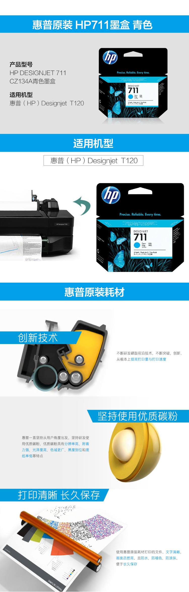 惠普 CZ135A 711墨盒 29ml 青色(適用T520/T120)