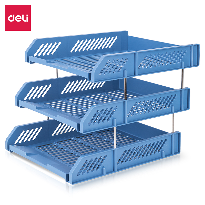 得力 9209 牢固加厚三層文件盤 藍(lán)色