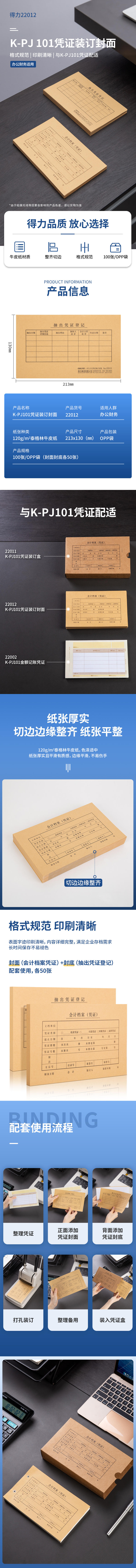 得力 22012KPJ101 憑證裝訂封面 213*130mm 混 50套/包