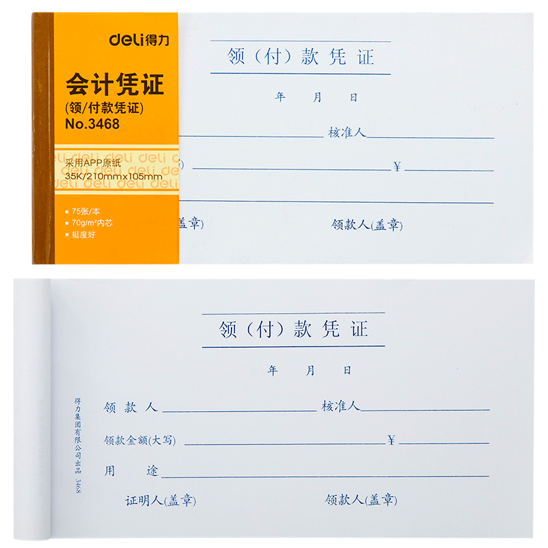 得力 3468 領(付)款憑證 210*105mm 白色 10本/包 按包銷售