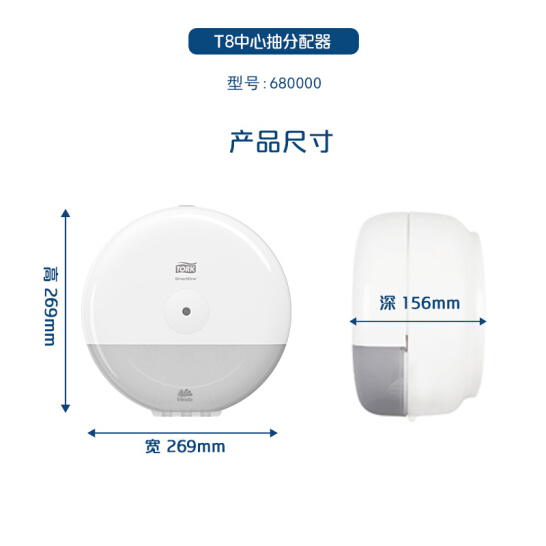 維達(dá)多康 T8 680000 SmartOne?中心抽衛(wèi)生紙分配器 ABS塑料 269*269*156mm