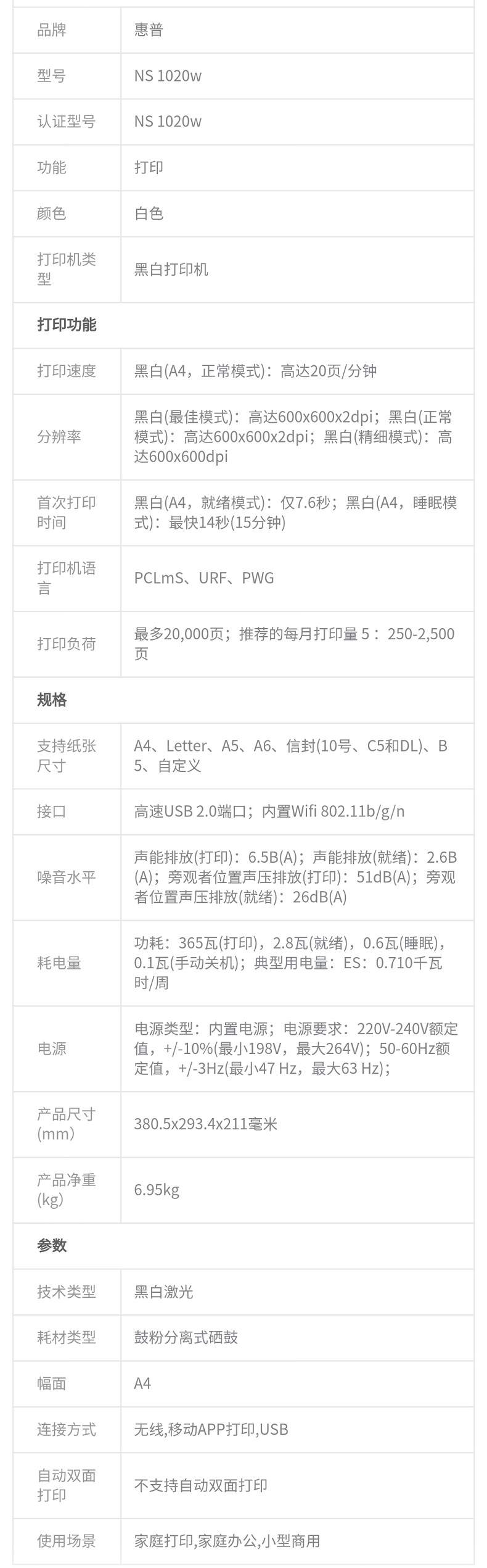惠普(HP)Laser NS 1020w智能閃充激光打印機(jī) 1020plus升級無線款 A4 創(chuàng)系列