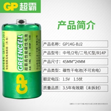 超霸 GP14G-BJ2 碳性電池 2號(hào) 2節(jié)/卡
