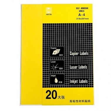 惠達(dá) HD-9802 不干膠打印標(biāo)簽 20張/包 A4 黃色 按包銷售