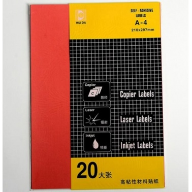 惠達(dá) HD-9801 不干膠打印標(biāo)簽 20張/包 A4 紅色 按包銷售