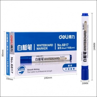 得力 6817 白板筆 2.0mm 藍(lán)色 10支/盒 按盒銷售