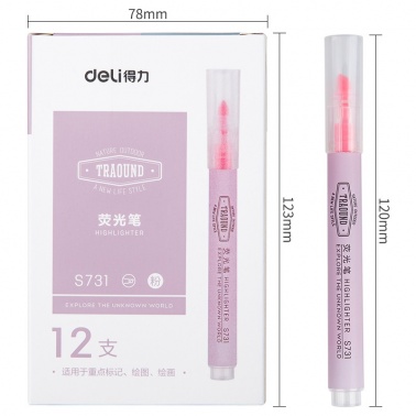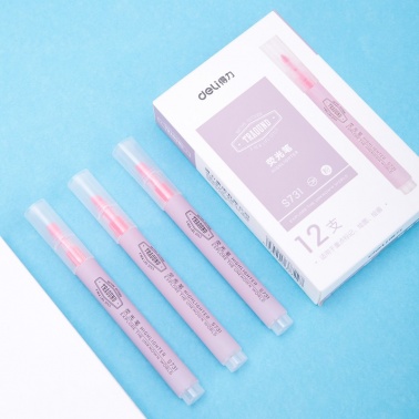 得力 S731 單頭細桿熒光筆 粉色 12支/盒