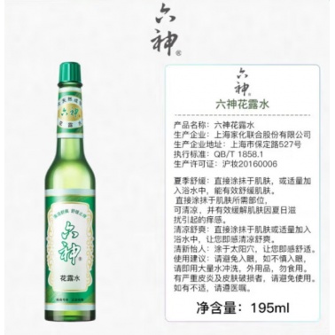 六神 清涼祛痱止癢花露水 195ml 玻璃瓶