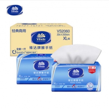 Vinda/維達 VS2060 單層三折擦手紙 222*226mm 200張/包 20包/箱
