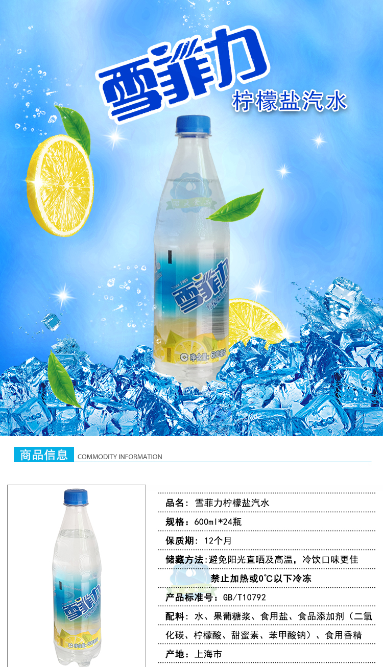可口可樂(Coca-Cola)雪菲力鹽汽水 600毫升*24瓶 檸檬味