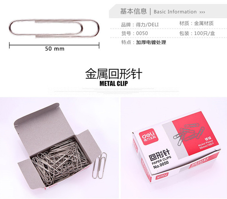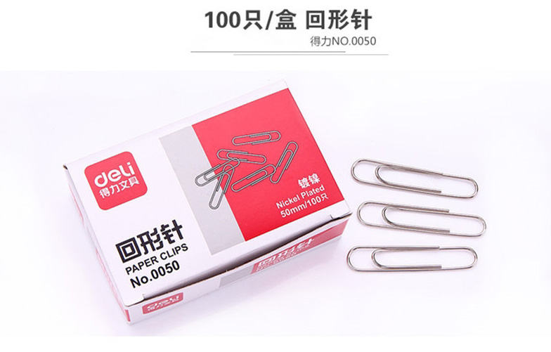 得力 0050 金屬電鍍大號回形針 50mm (100枚/盒)