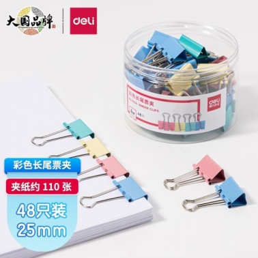 得力 8554 長(zhǎng)尾票夾 25mm 彩色 48個(gè)/筒