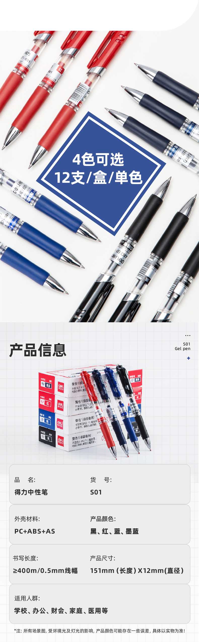 得力 S01 中性筆 0.5mm 黑色 12支/盒