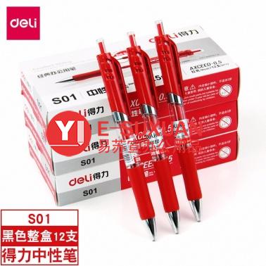 得力 S01 中性筆 0.5mm 紅色 12支/盒
